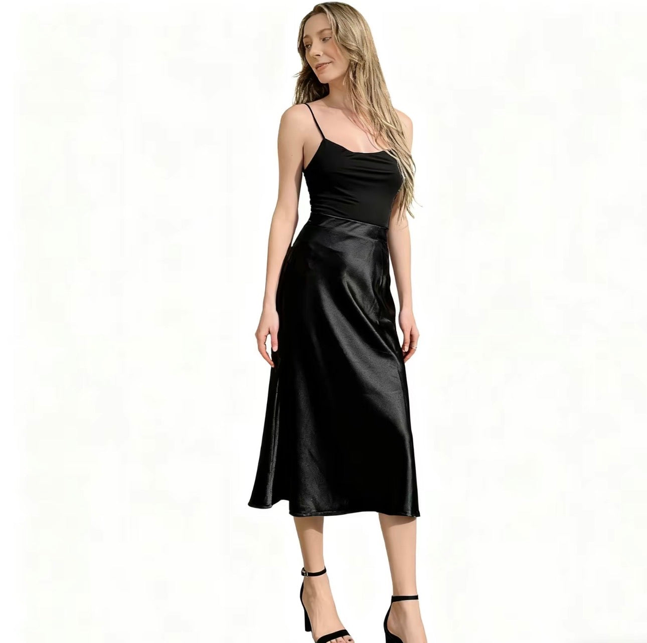 Our midi satin skirt features an A-line cut design with an elastic waistband and a side zipper providing a flattering and comfortable fit. The skirt is crafted from skin-friendly satin with a medium thickness, ensuring a luxurious and smooth feel.